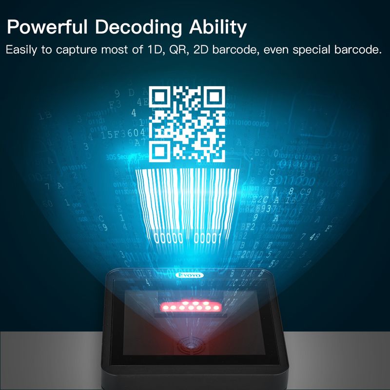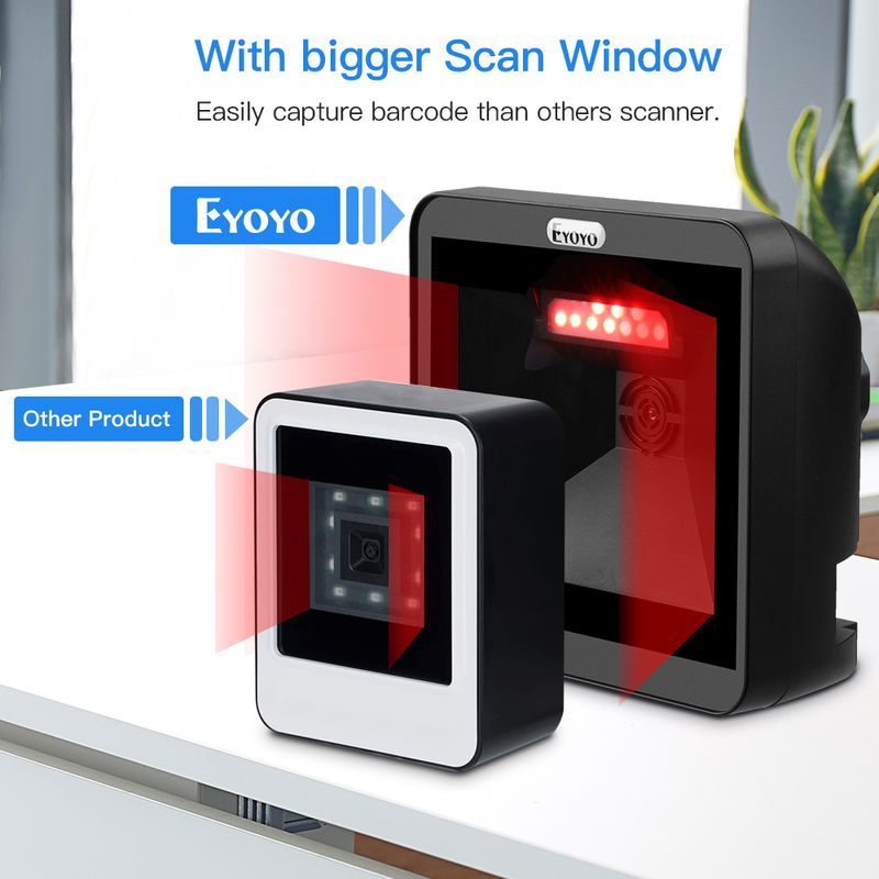 Eyoyo 2D Desktop Barcode Scanner, Omnidirectional Hands-Free Wired USB Big Barcode Reader, 1D QR Screen Barcodes Scanning Automatic Sensing Platform Scanner for Supermarket Library Retail Store