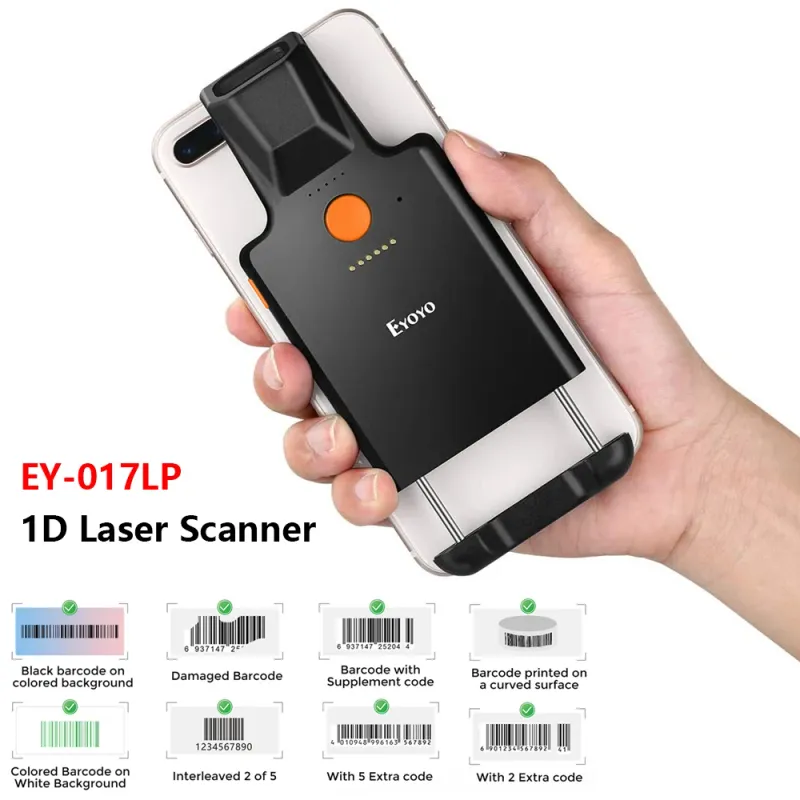 The Eyoyo Phone Scanner design with only 90g/3.1oz weight and retractable bracket, the barcode scanner can be easily installed on your iPhone and android phones with a length of 5.4-6.5 inches.