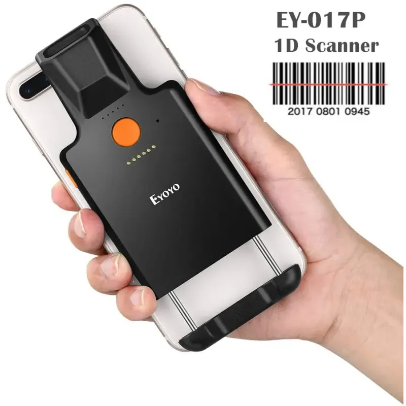 This barcode scanner is the best partner to work with phone, it is designed to clip in the back of your phone, by simple Bluetooth connection operation, when you scan barcode, you can check barcode data or quantity upload on the phone simultaneously, easy to use.