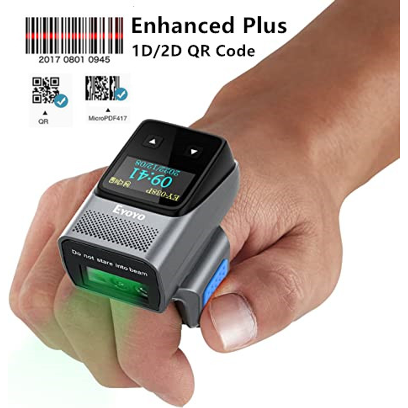 Eyoyo 2D Bluetooth Ring Barcode Scanner with Screen Mini Wearable Wireless Finger QR Bar Code Scanner Reader Ring Scanners