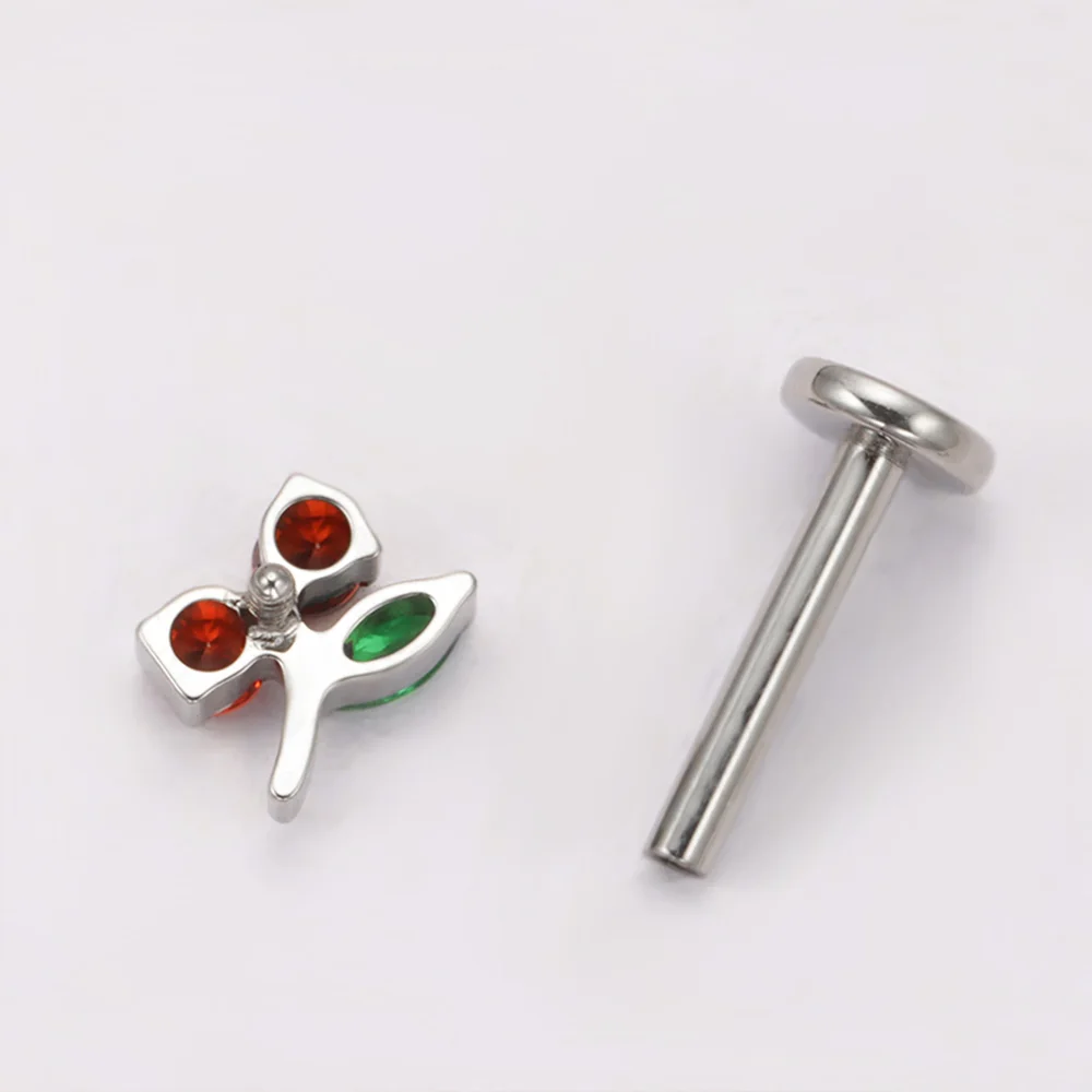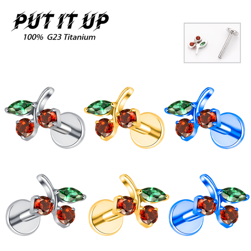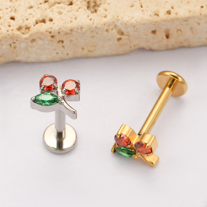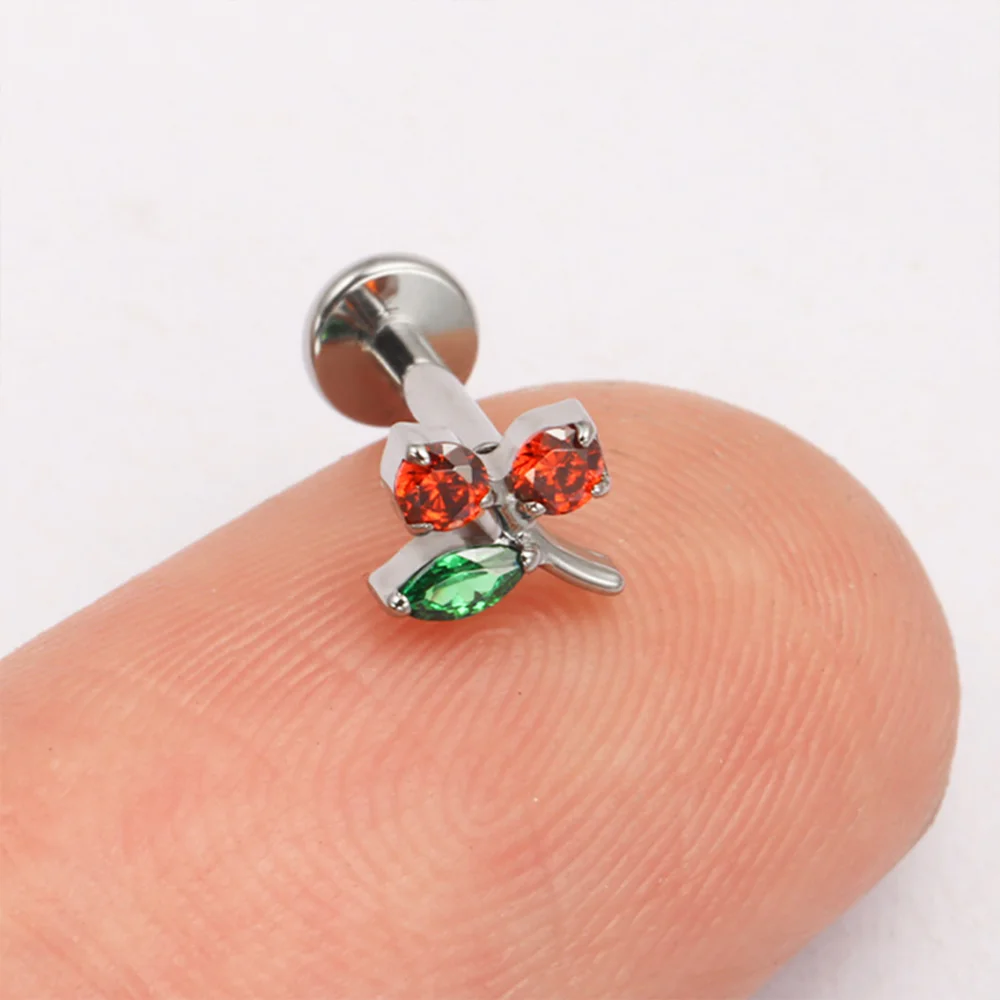F136 Titanium Alloy Fashion New Mini Cherry Zirconia Stud Earrings Anodized Ear Cartilage Lip Studs Body Piercing Jewelry