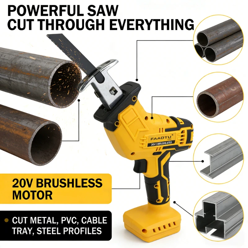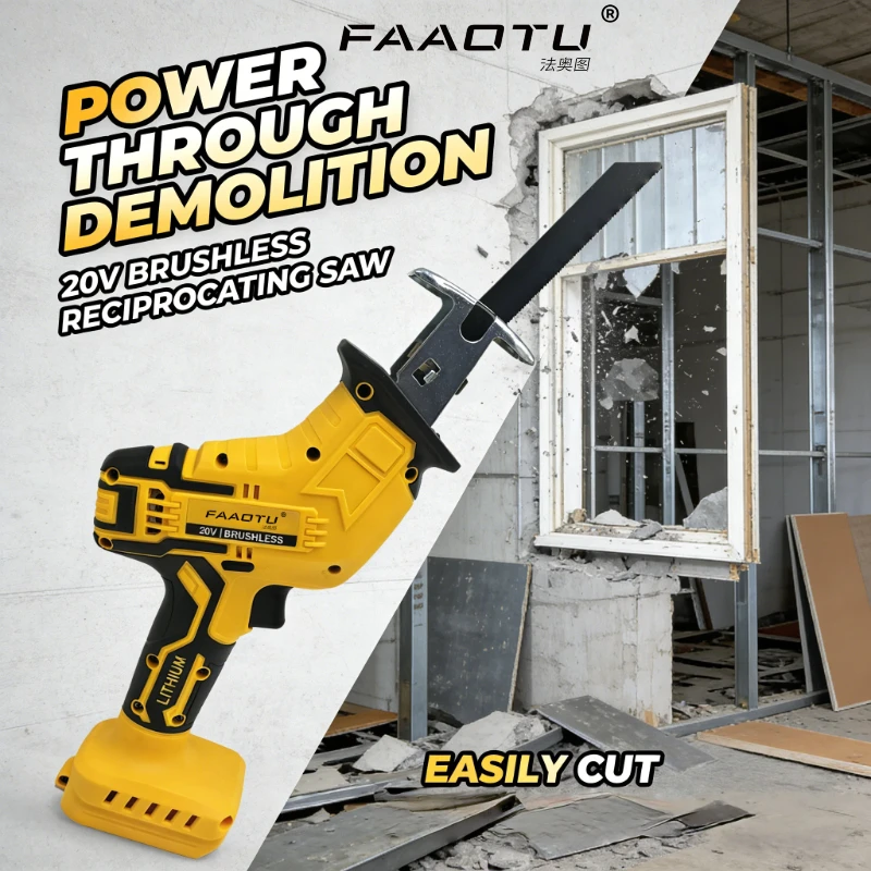 FAAOTU 20V Brushless Cordless Reciprocating Saw for DIY & Construction Cutting Suitable for DW battery NO battery