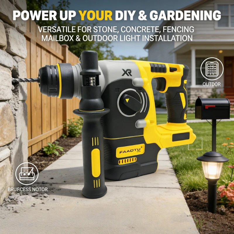 FAAOTU 20V Rotary Hammer Drill Brushless Cordless Impact Hammers Tool Suitable for DW battery NO battery