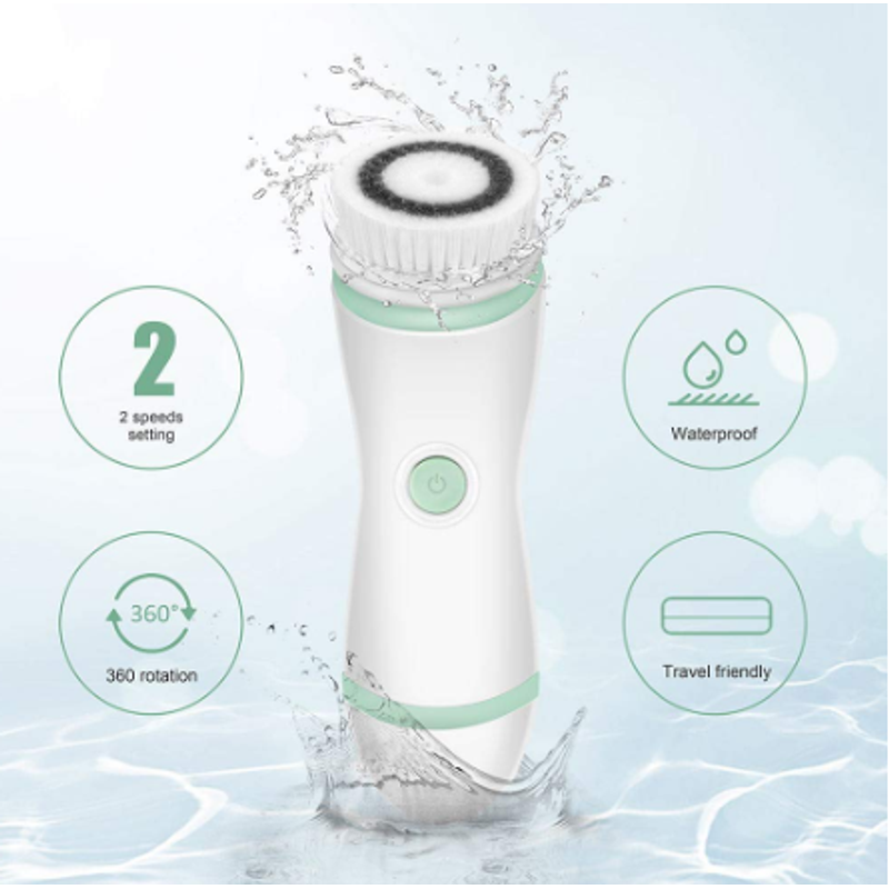 ● Complete 4-in-1 cleaning system-4 brush heads include exfoliating brush, soft cleaning brush, soft sponge and silicone brush. Suitable for all skin types and all your facial cleansing needs ● 2 SPEEDS with powerful spin rotation-free choice between daily deep scrub and gentle exfoliation ● Easy to carry-Comes in a compact storage box that you can take with you or use it at home ● Waterproof design-Waterproof shower IPX6 waterproof. Do not completely soak in water