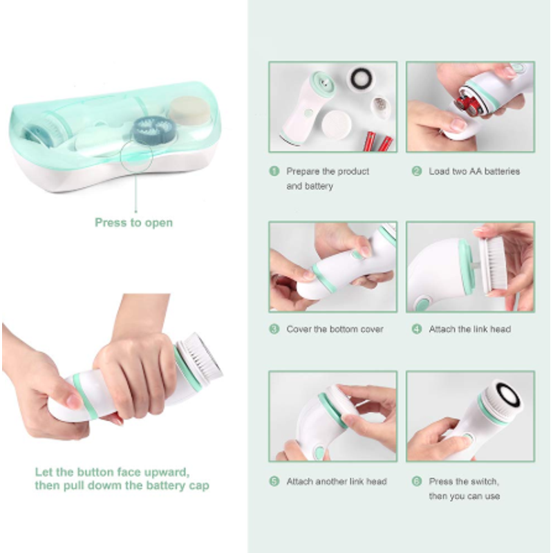 The full cleaning system 4 includes an exfoliating brush, a soft brush, a soft sponge and a silicon brush in the 1-4 brush head.Suitable for all types of skin and all your facial cleansing needs