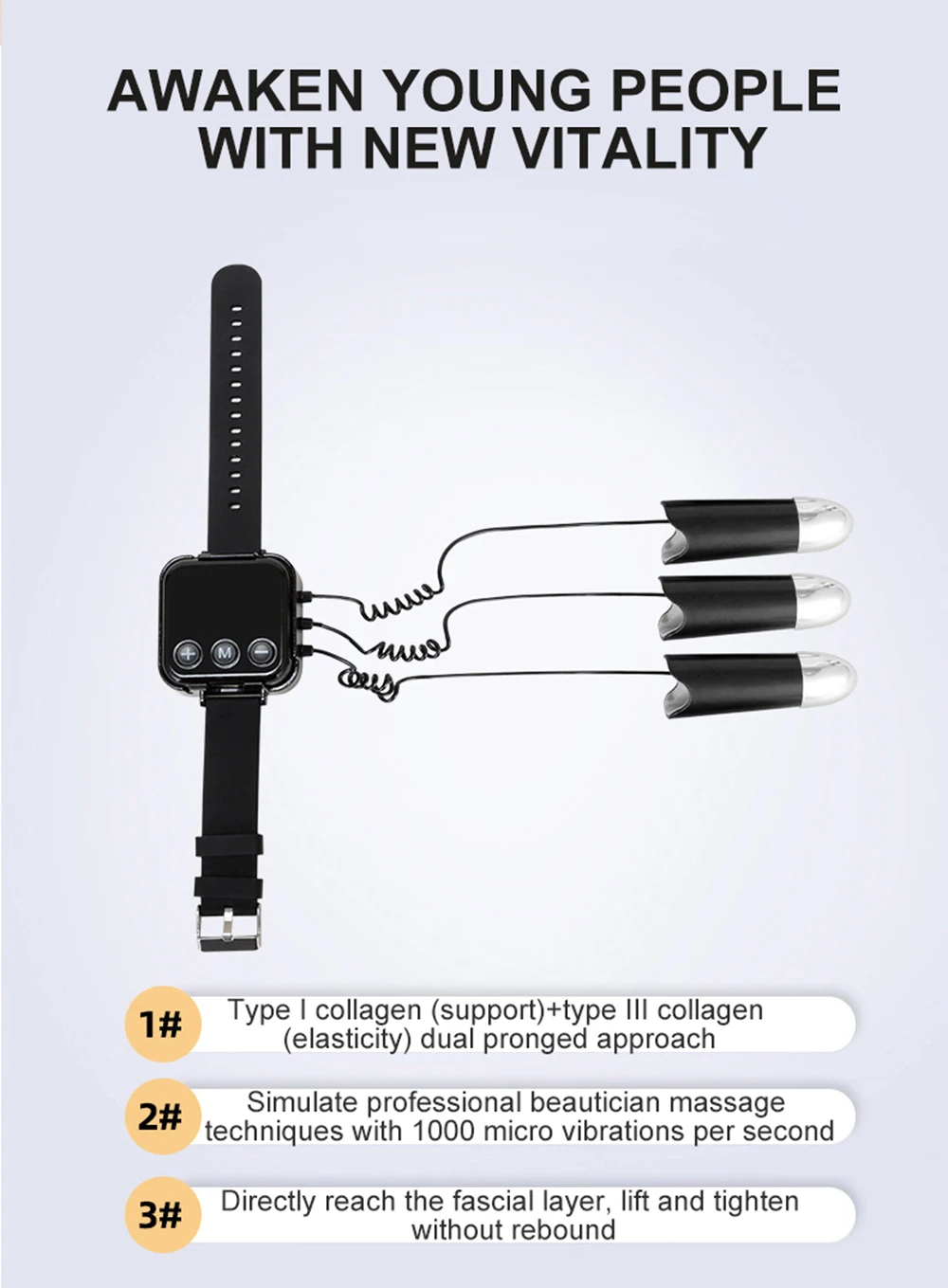 ②. Simulate professional beautician massagetechniques with 1000 micro vibrations per second