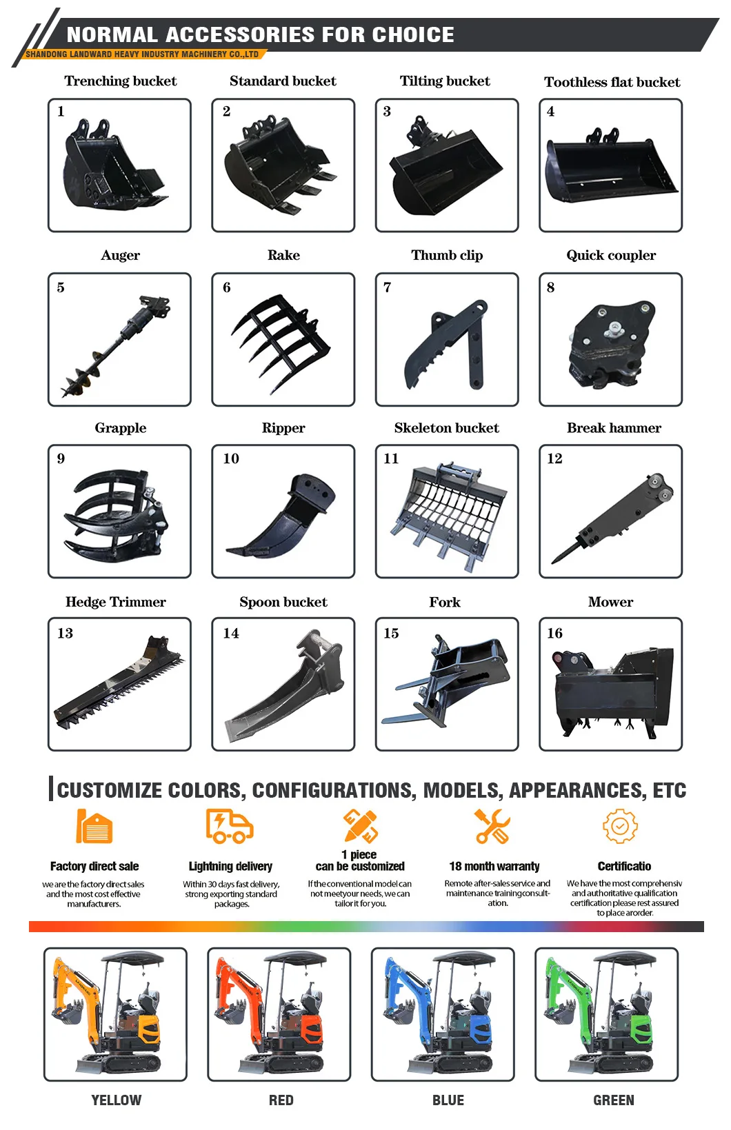 LANDWARD excavator models are complete. If you need other models not shown here, please click to find our professional sales staff to get more information and the best price. If you have any needs that we do not show here, please contact us for direct sales.