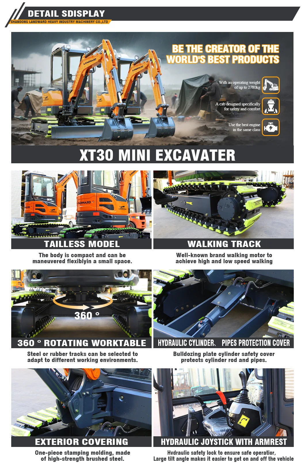 Landward have mini excavators from 1ton-8tons, if need other model which not showed here, please click and find our professional salesman for more information and the best price.
