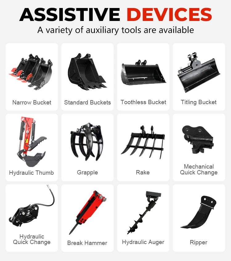 Our mini excavator has many accessories to choose from.Meet your more work needs