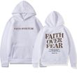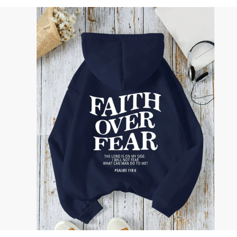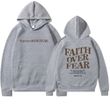 Feature: Faith Over Fear Christian hoodie top, Religion sayings Inspirational sweatshirt, drop shoulder trendy Christian top, drawstring hoodies casual long sleeve top.