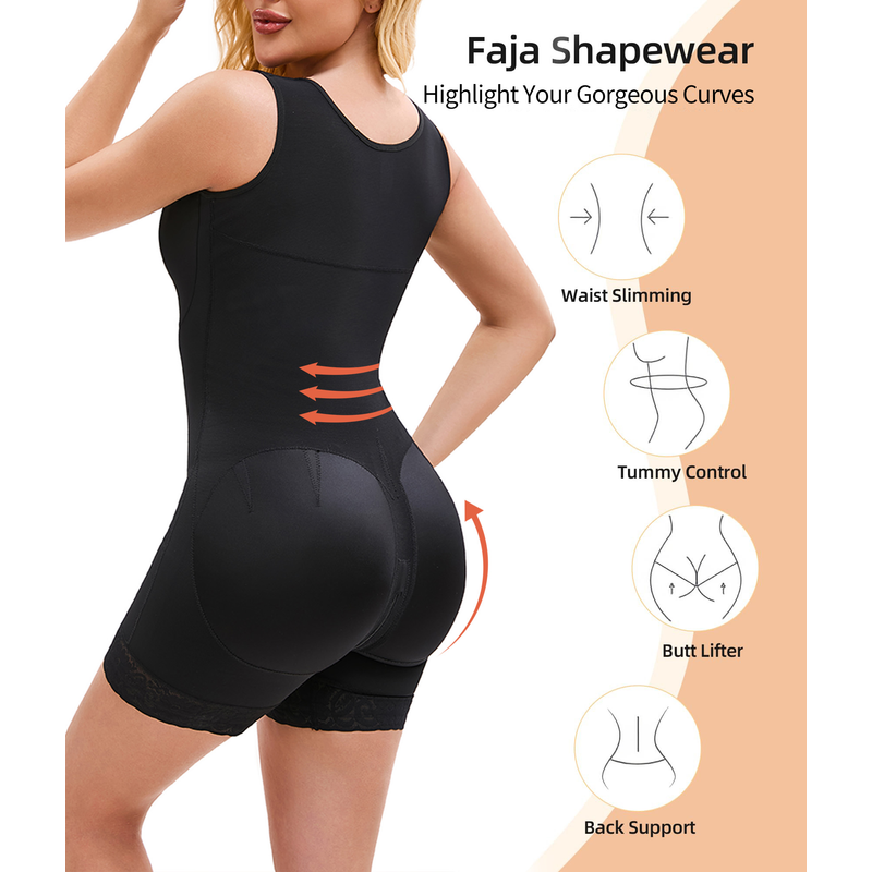 ENHANCED CURVE DEFINITION WITH EASE - This shapewear includes a convenient open-crotch zipper, allowing you to use the restroom without full removal. Its delicate lace-trimmed leg hems prevent rolling. Elevate your silhouette with the effortless butt-lifting design, complementing any outfit with striking curves.