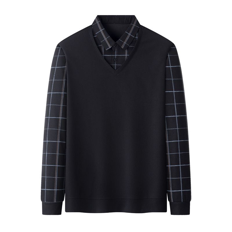 Fake Two-piece Loose Casual Polo Shirt Black 190cm