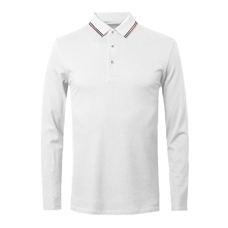 Fall Long Sleeved Solid Color Lapel Polo Shirt Men's Top White 2XL
