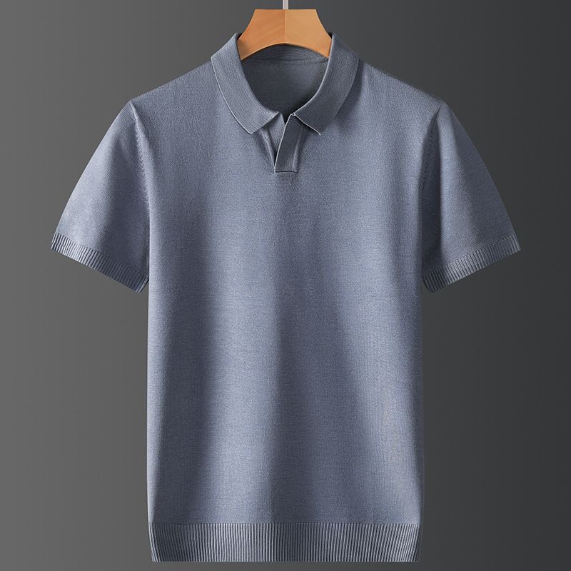 Fall Winter Men Short-sleeved Trendy Polo Shirt Lake Blue 2XL
