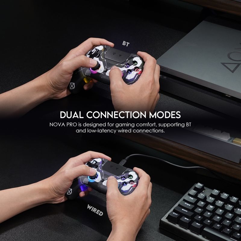 NOVA PRO is designed for gaming comfort, supporting BT and low-latency wired connections.