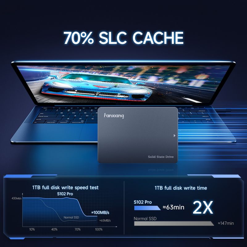 Acceleration zone:70%.When transmitting data, it can transmit at high speed 70% of the time, which has better transmission stability than ordinary SATA SSD.