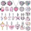Fashion 925 Sterling Silver Pink Heart-shaped Elephant Turtle Mushroom Pendant Beads fit Necklaces Bracelets Women Jewelry Gifts