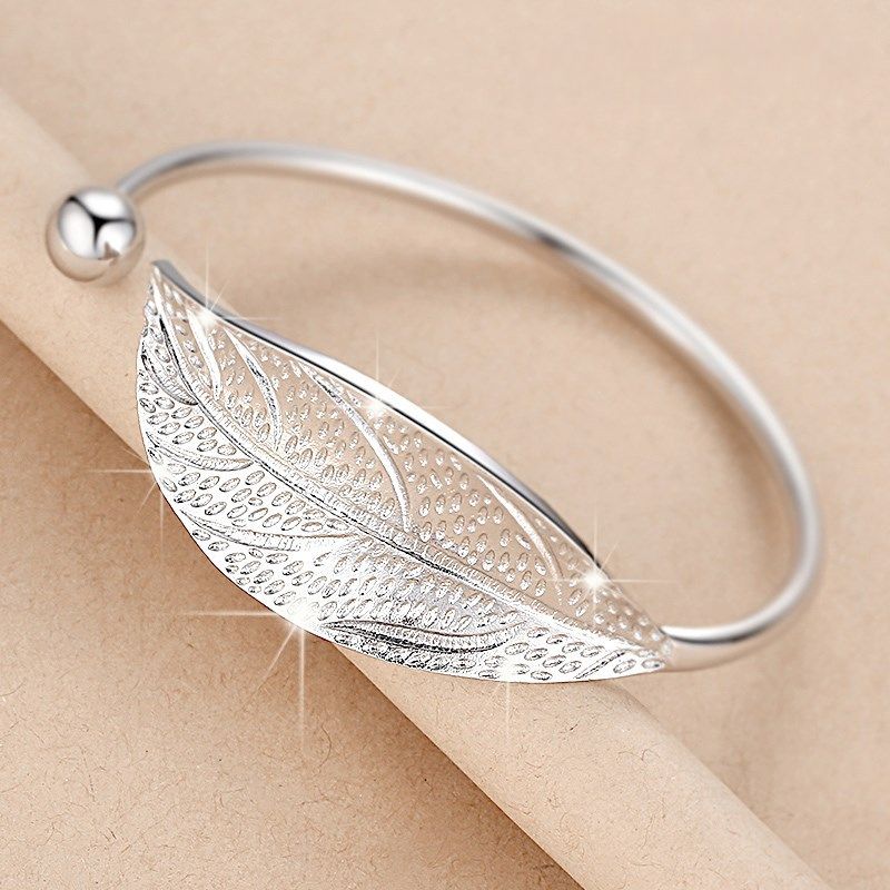 Fashion 925 Sterling Silver Woman Cuff Bracelet Open Leaf Shaped Adjustable Charm Bangle Bracelets Luxury Party Jewelry Gifts
