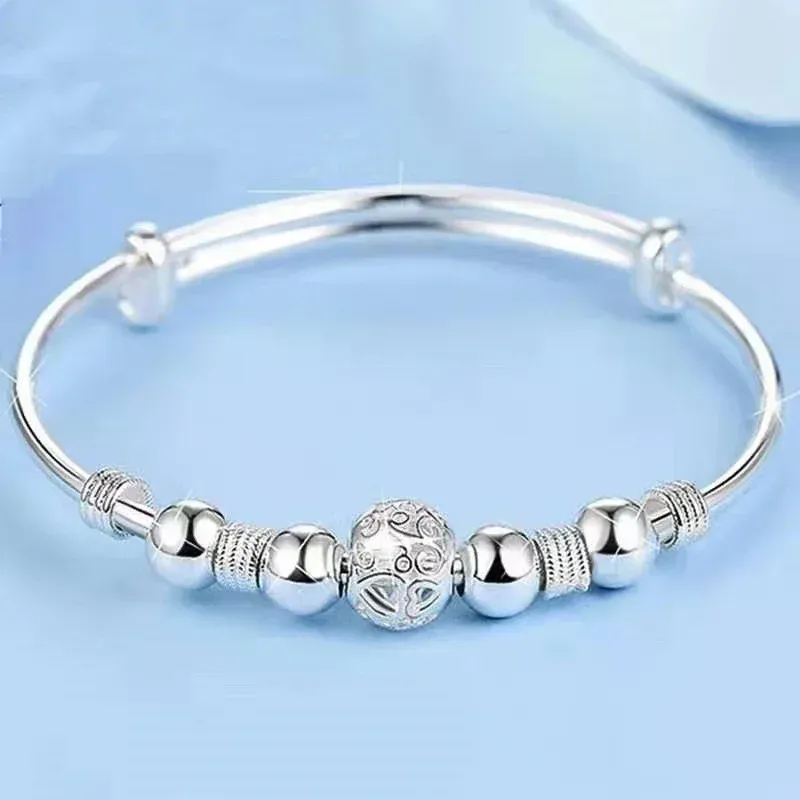 Fashion 925 Sterling Silver Woman Cuff Bracelet Open Leaf Shaped Adjustable Charm Bangle Girls Party Jewelry Christmas Gifts