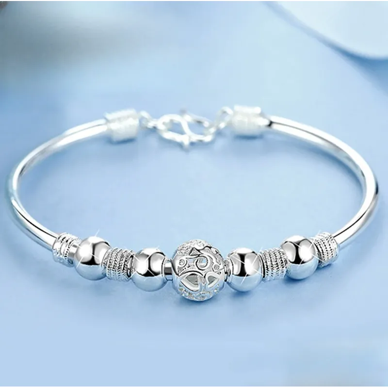 Fashion 925 Sterling Silver Woman Cuff Bracelet Open Leaf Shaped Adjustable Charm Bangle Girls Party Jewelry Christmas Gifts