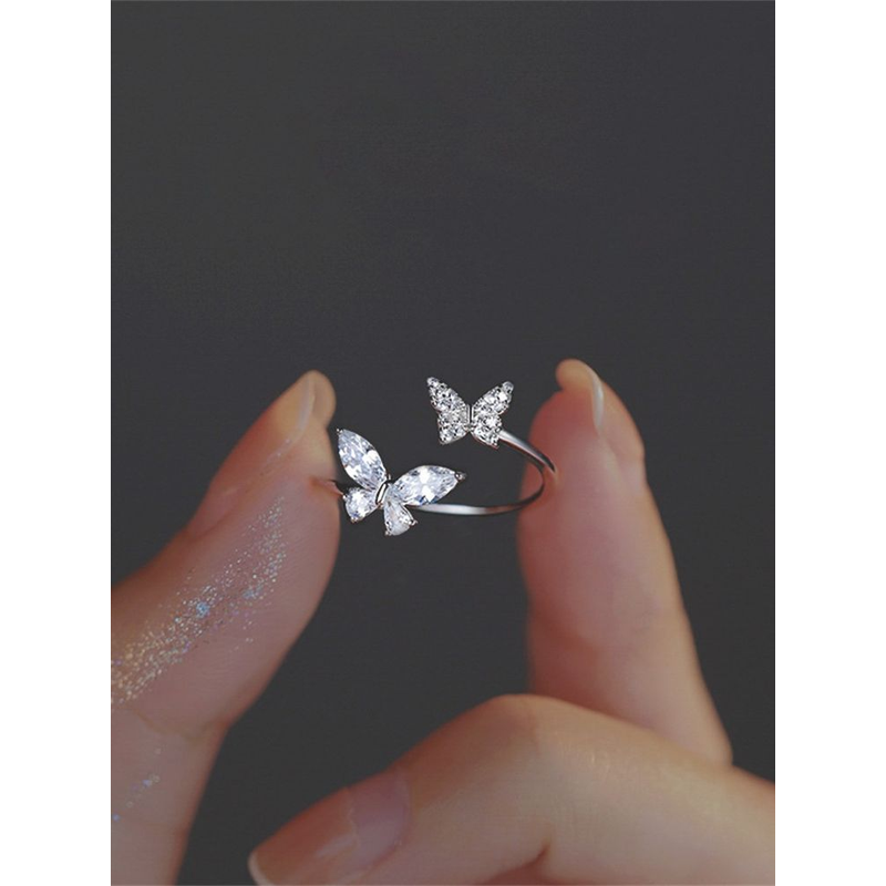 Fashion Adjustable Open Acrylic Crystal Butterfly Ring For Women Kpop Silver Color Zircon Finger Ring Party Jewelry Wholesale