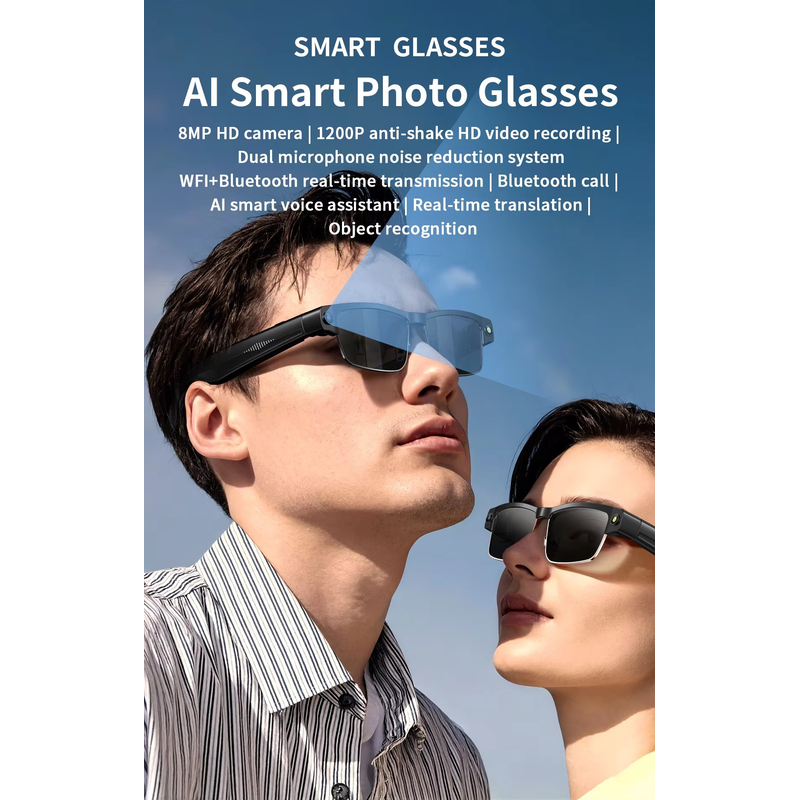 Fashion AI Smart Glasses L802 with 8MP HD Camera 1200P Video Recording Noise Reduction Real Time Translation BT Call Sunglasses