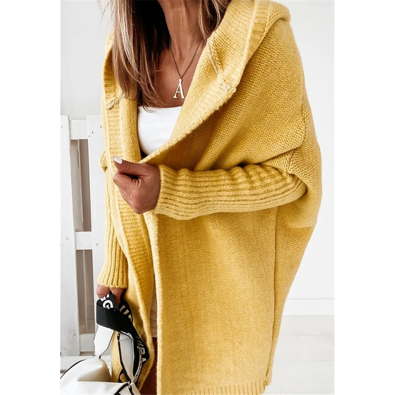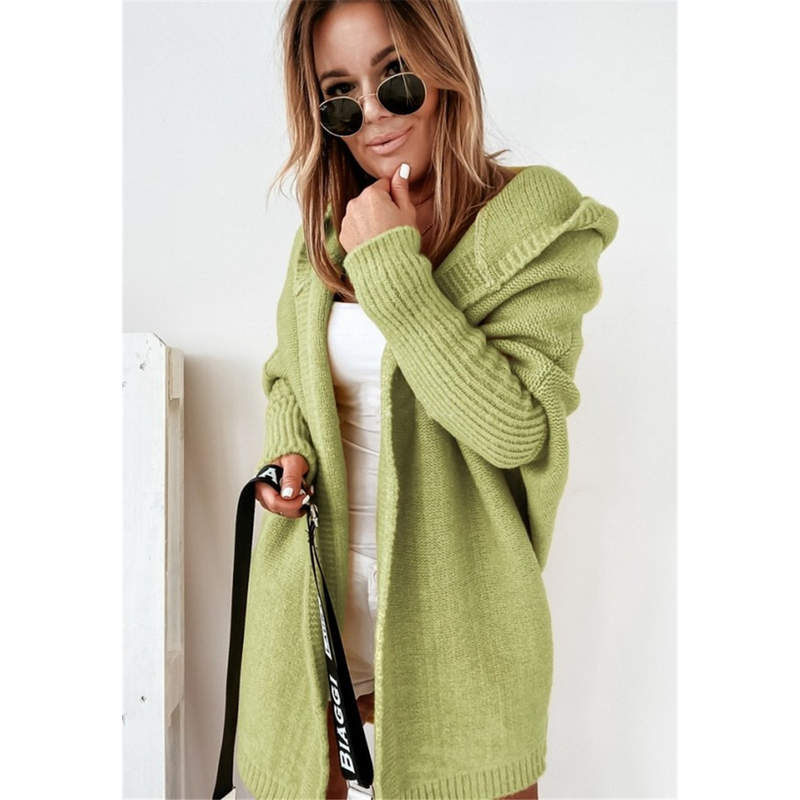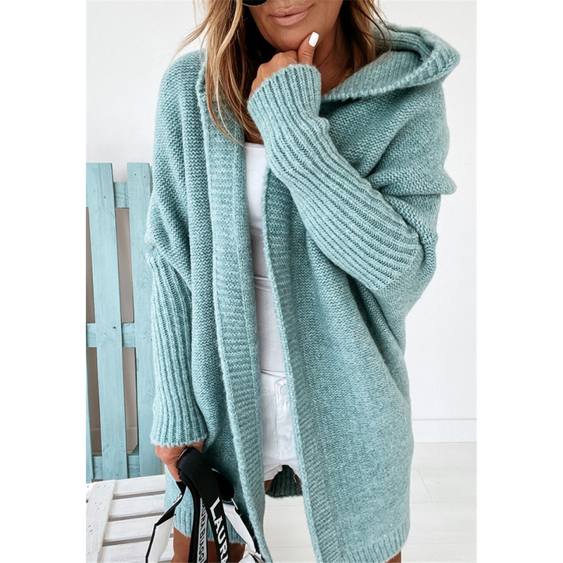 Fashion Bat Sleeve Hooded Cardigan Oversized Loose Temperament Solid Color Sweater Womens Clothing Army Green S