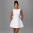 Fashion Big-Bowed Pearls Backless Dress Summer Slim Sleeveless A-line Dresses For Party Evening Women's Clothing White 2xl