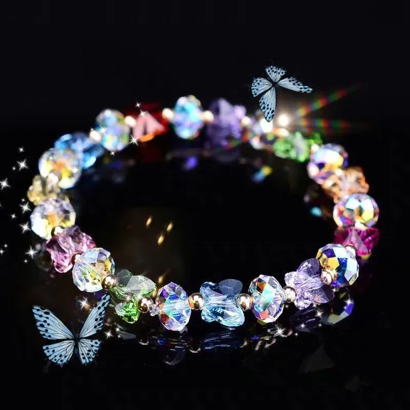 Fashion Butterfly Charm Crystal Stretch Beaded Bracelets Elastic Rope Women Temperament Bracelet