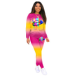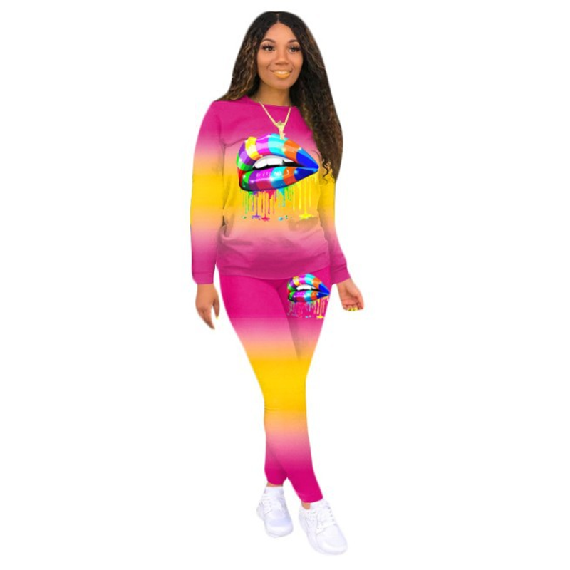 Fashion Casual Gradient Color Lips Print Long-sleeved Trousers Sports Suit Rose Red S