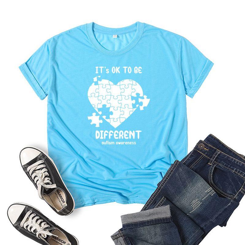Fashion Casual Graphic Print Short-sleeved T-shirt Light Blue 2XL