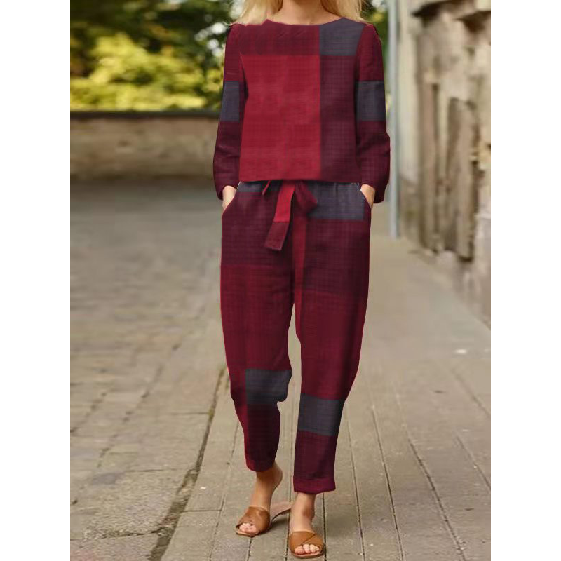 Fashion Casual Ladies Colorblock Long Sleeve Suit Big red plaid L