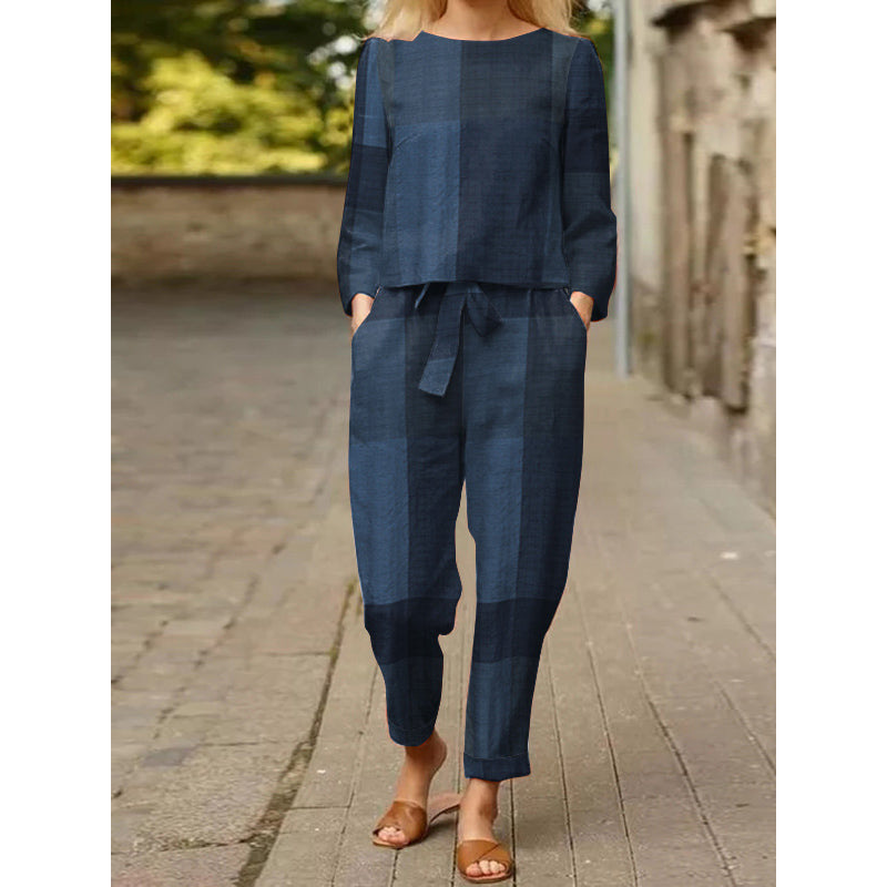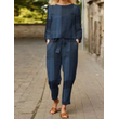 Fashion Casual Ladies Colorblock Long Sleeve Suit Blue 2XL