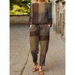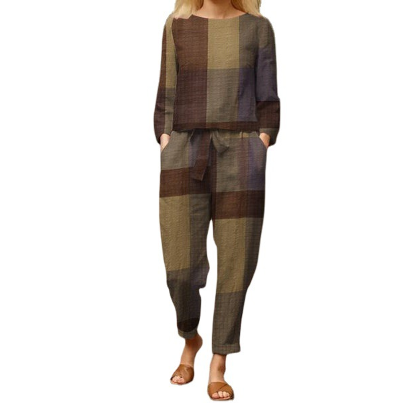 Fashion Casual Ladies Colorblock Long Sleeve Suit Khaki 2XL