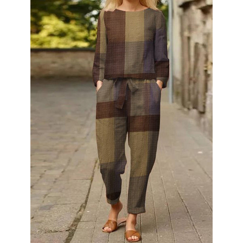 Fashion Casual Ladies Colorblock Long Sleeve Suit Khaki 5XL