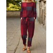 Fashion Casual Ladies Colorblock Long Sleeve Suit Red S