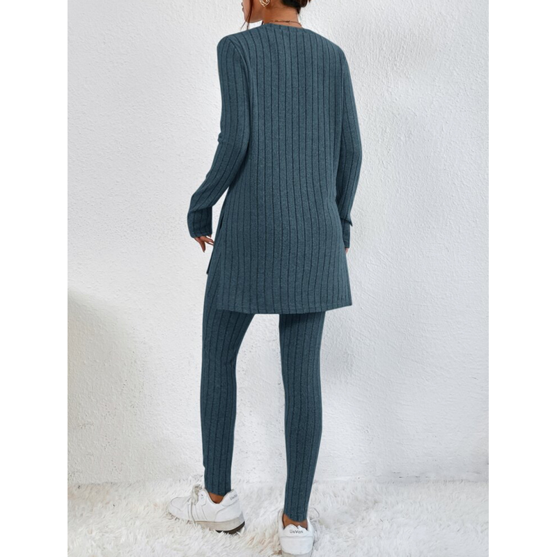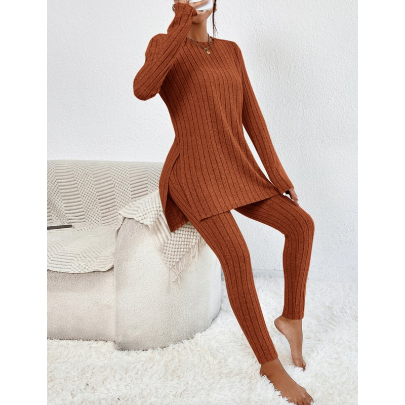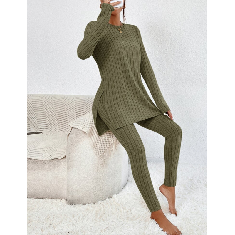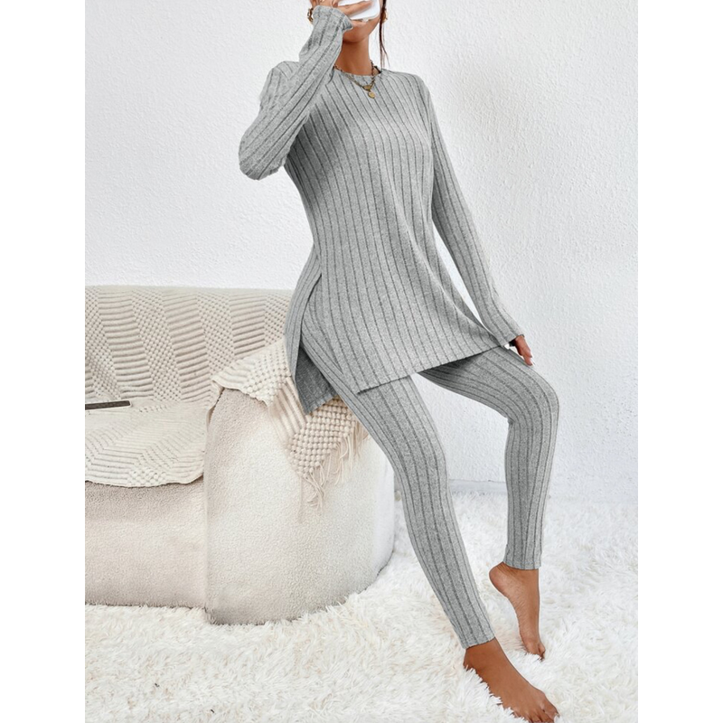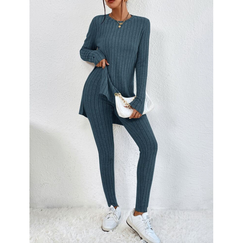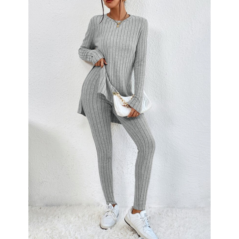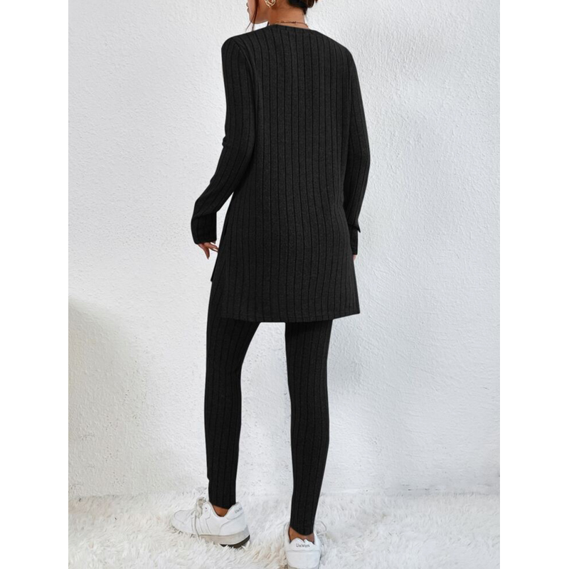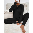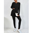 Fashion Casual Long Sleeve Split Irregular Round-neck Shirt Trousers Suit Black 5XL