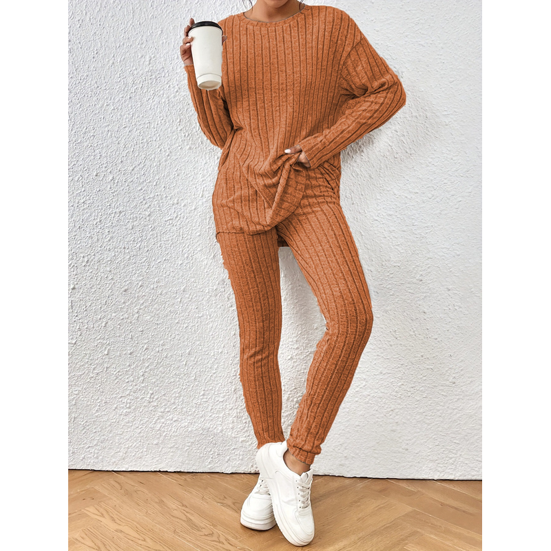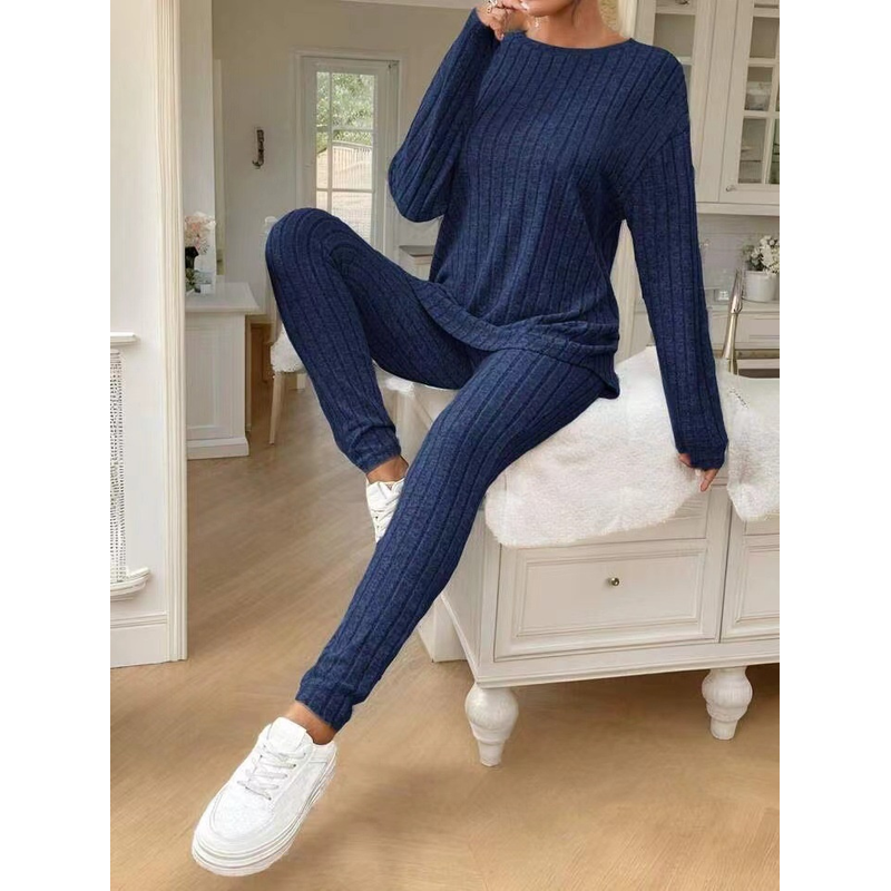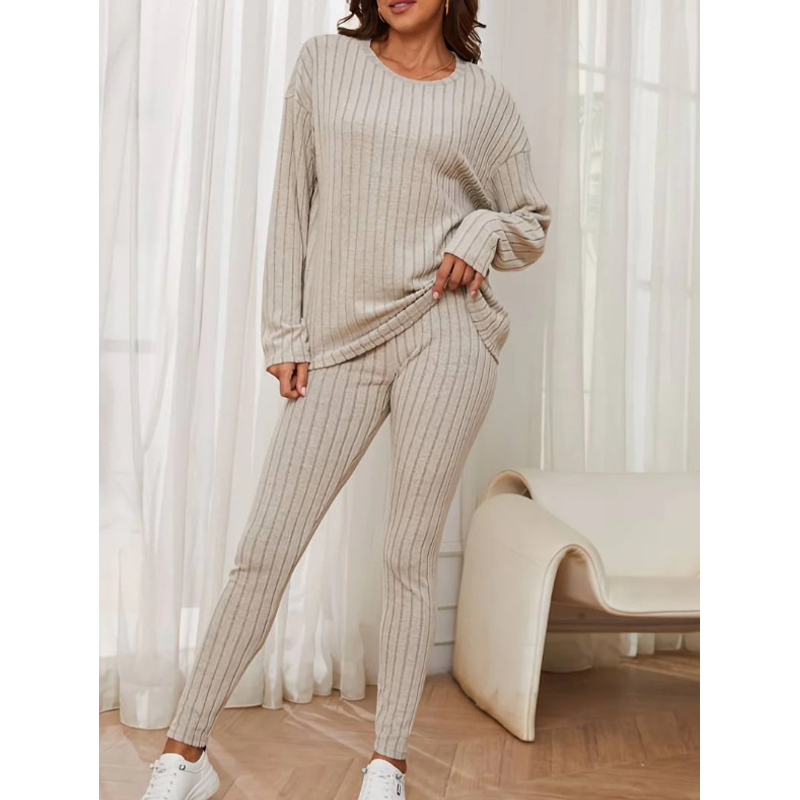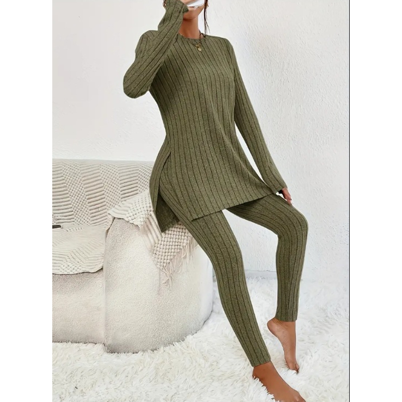 Fashion Casual Long Sleeve Split Irregular Round-neck Shirt Trousers Suit Off White L