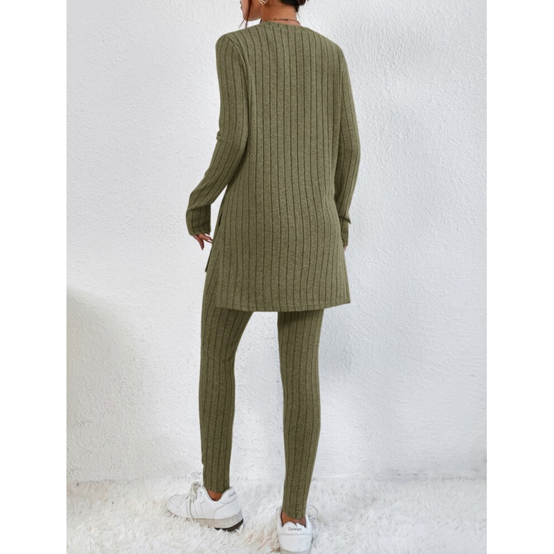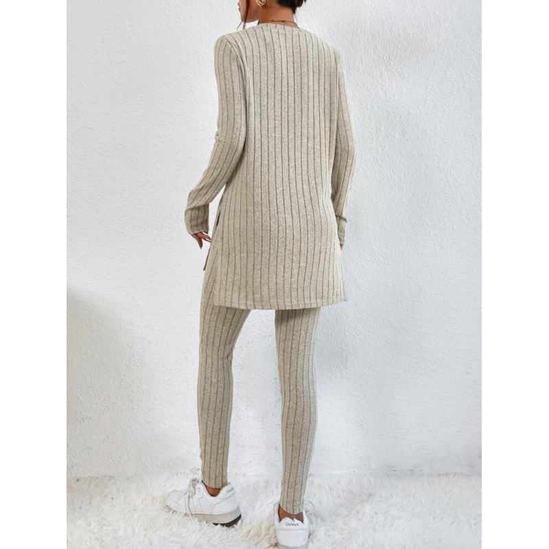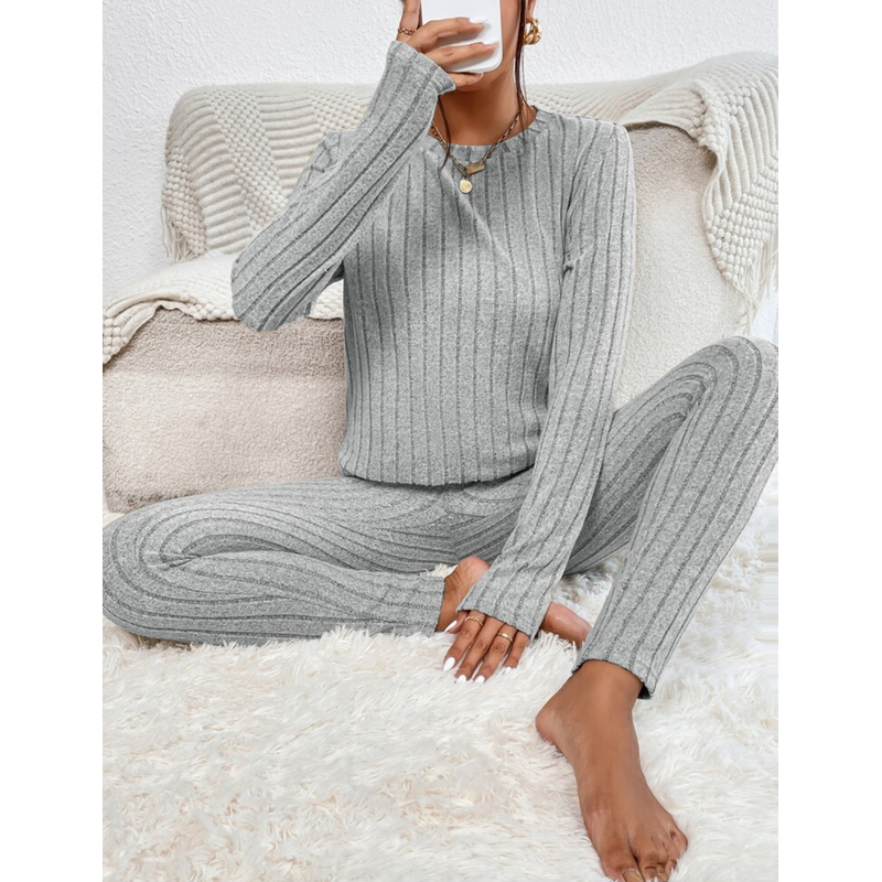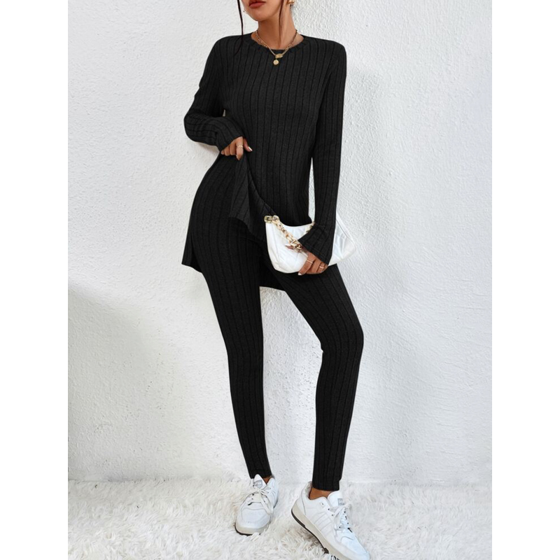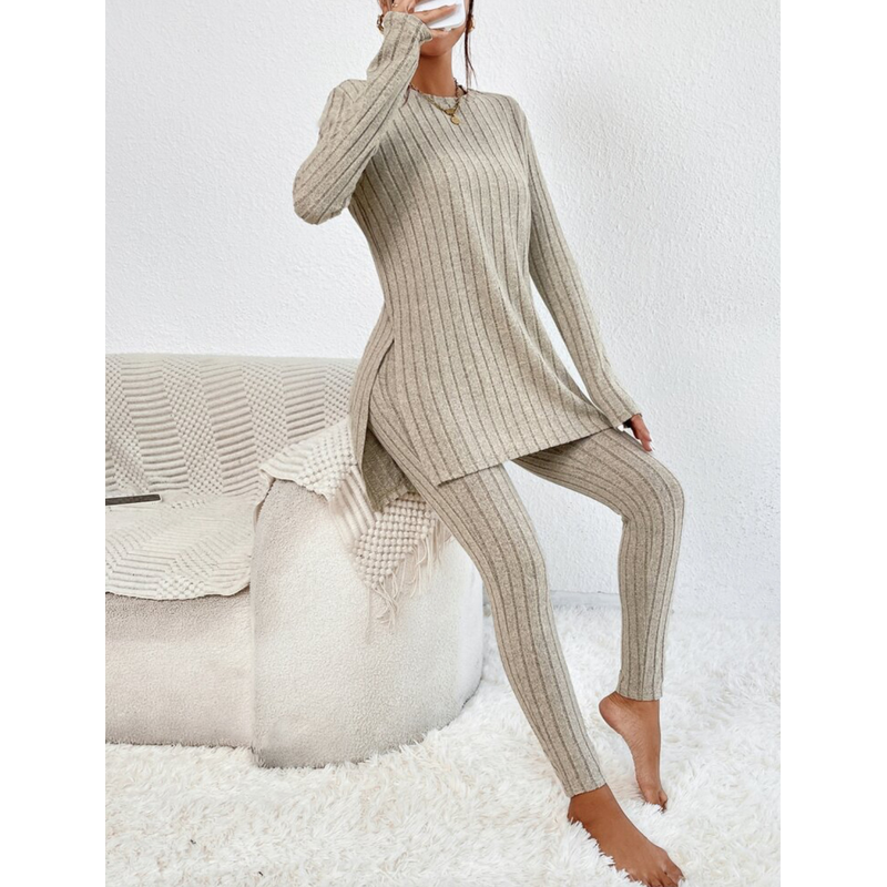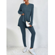 Fashion Casual Long Sleeve Split Irregular Round-neck Shirt Trousers Suit Rose Red 2XL