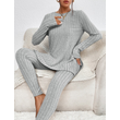 Fashion Casual Long Sleeve Split Irregular Round-neck Shirt Trousers Suit Sea Blue S