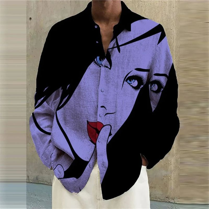 Fashion Casual Printing Shirt Men's Long Sleeve White M
