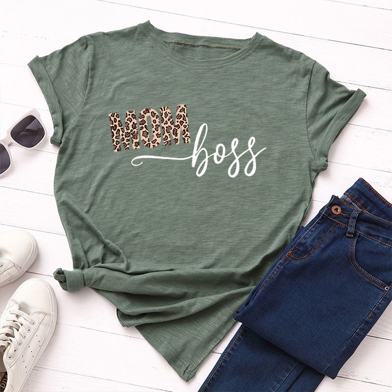 Fashion Casual Women's Loose Printed Short-sleeved T-shirt Light pink 2XL