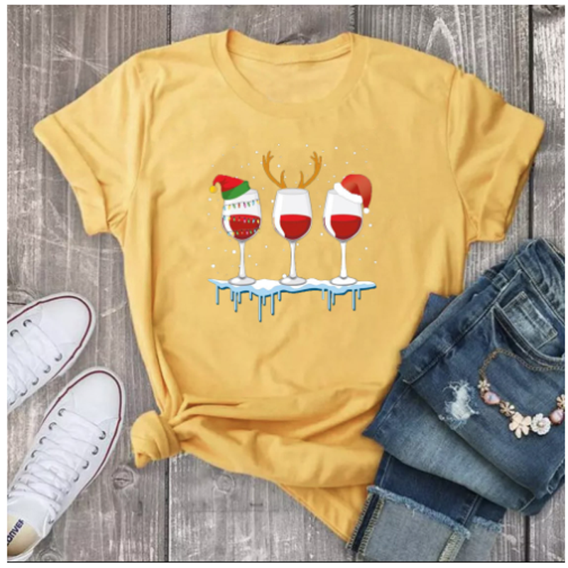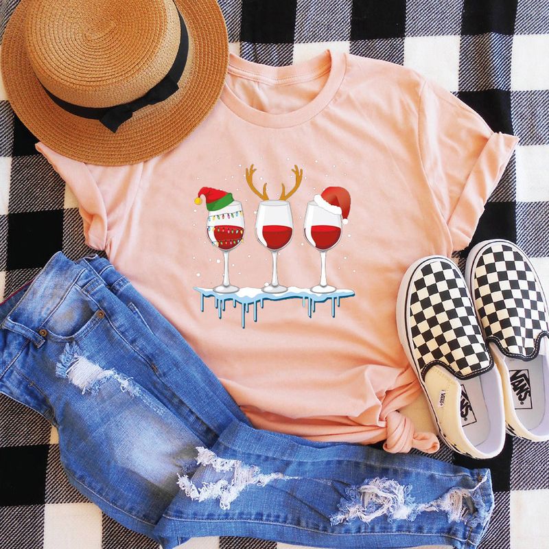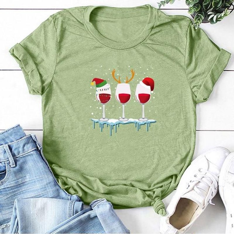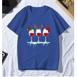 Fashion Casual Women's Printed T-shirt Short Sleeves Navy blue 2XL