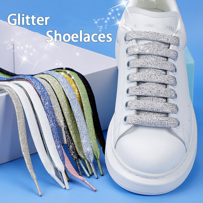 fashion Colorful Shoelaces Glitter White Shoelaces Sneakers Shiny Gold Shoelace Silver Flat Shoe Lace Sports Running Laces 1Pair