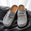 Fashion Comfortable Men's Casual Shoes Leather Loafers Half Slippers Slip-on Lazy Driving Shoes Couple Breathable Walking Shoes