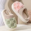 Fashion Couple Winter Slides Warm Plaid Fluffy Slippers Soft Sole Flip Flops For Women And Men Home Indoor Non-slip Cotton Shoes