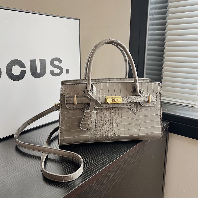 Fashion Crocodile Pattern Kelly Women's Handbag OFF White