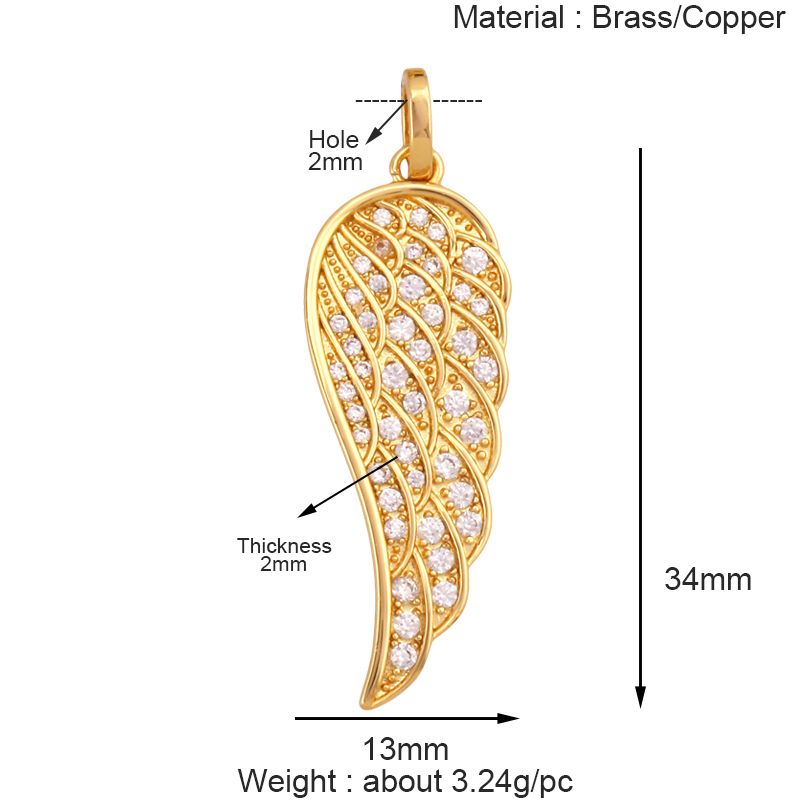 Fashion Cubic Zirconia Feather Charm Pendant,Real 18K Gold Plated Necklace Bracelet Jewelry Findings Accessories Supplies S38