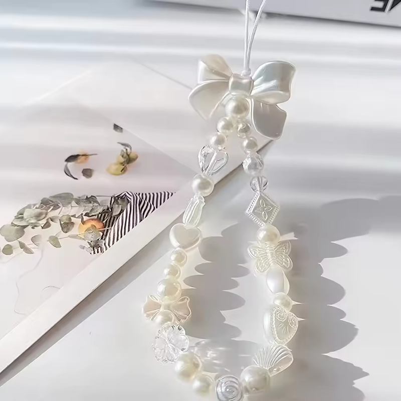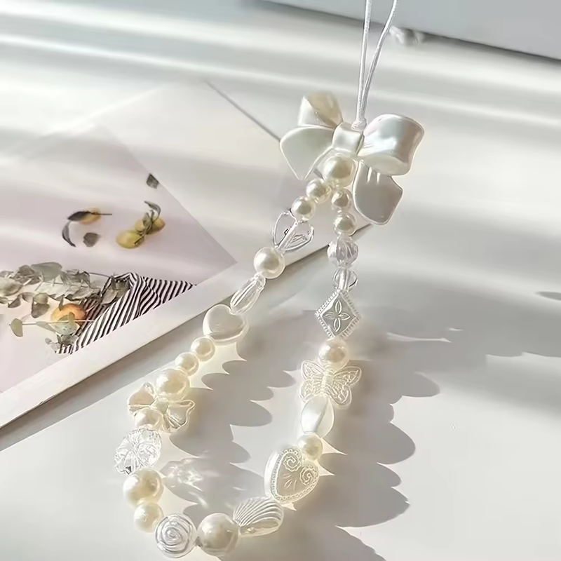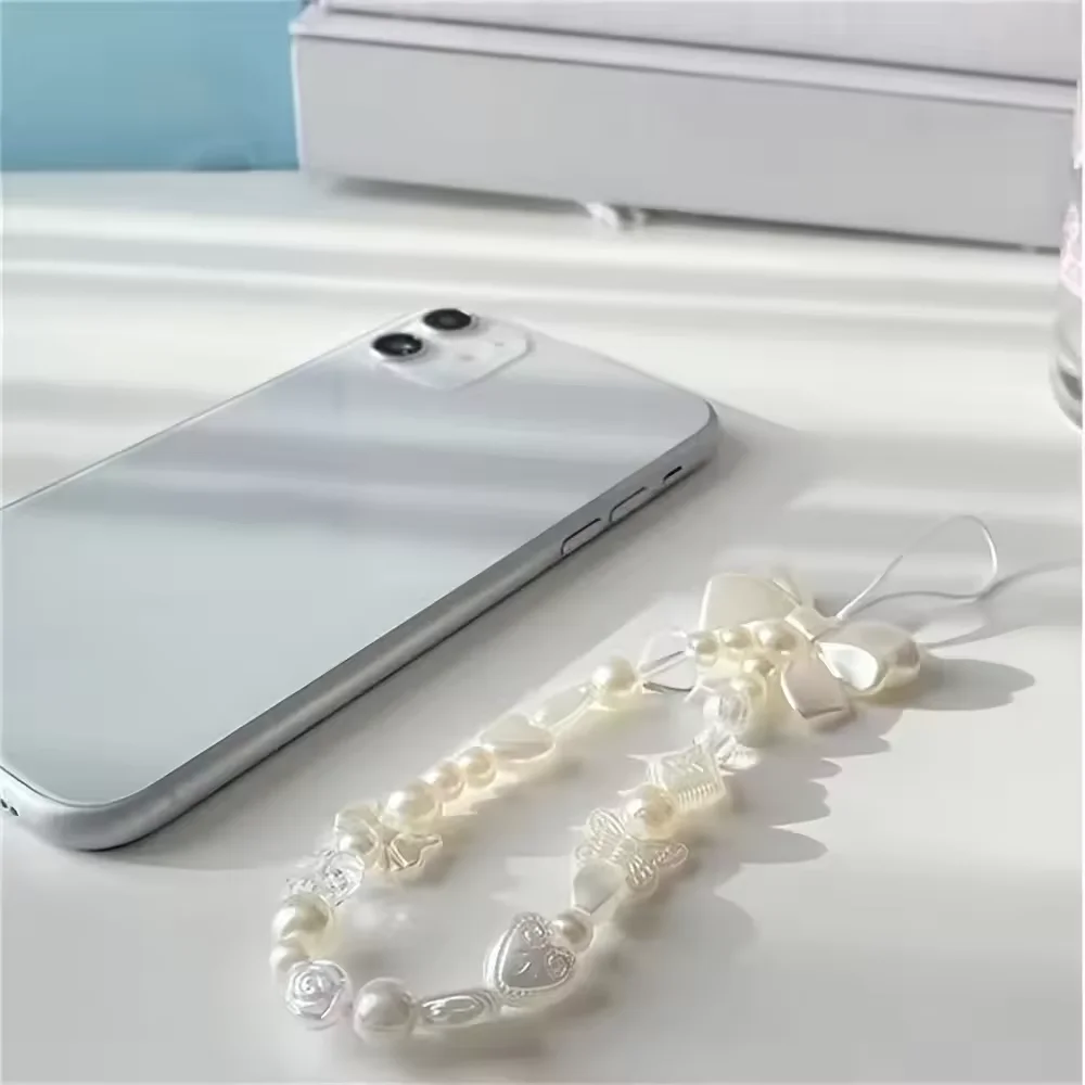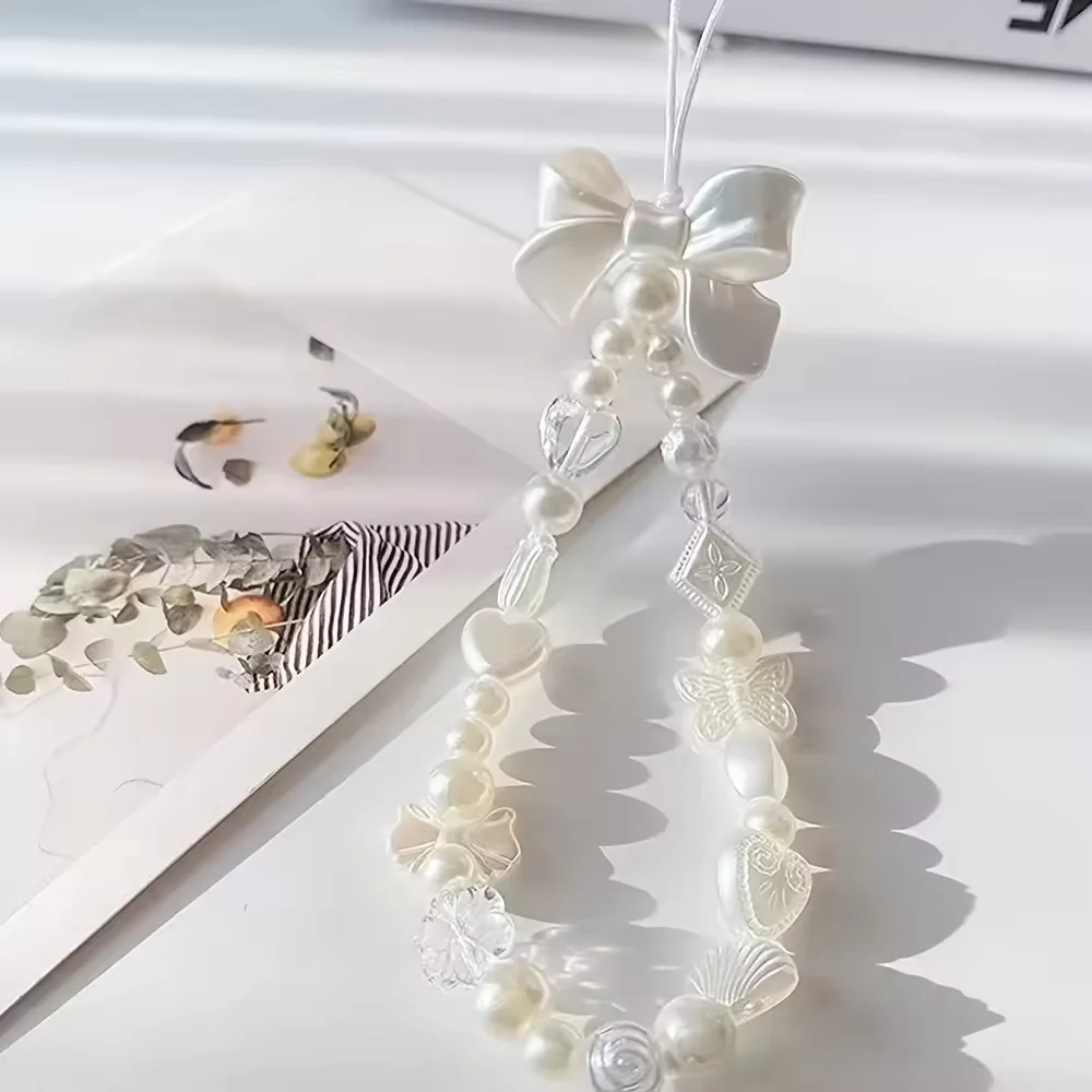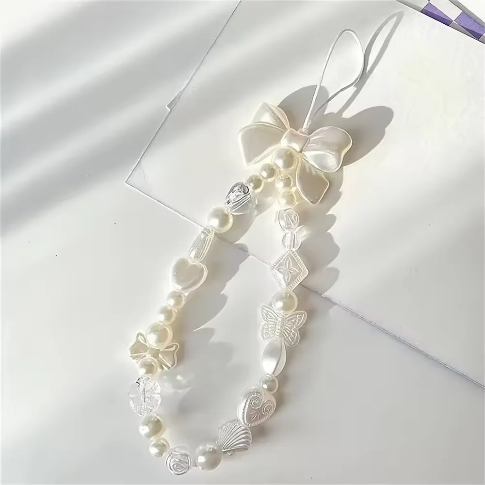 Fashion Cute Pearl Love Heart Bowknot Phone Chain Charm Lanyard For iPhone Samsung Huawei Universal Accessories Jewelry Pendant