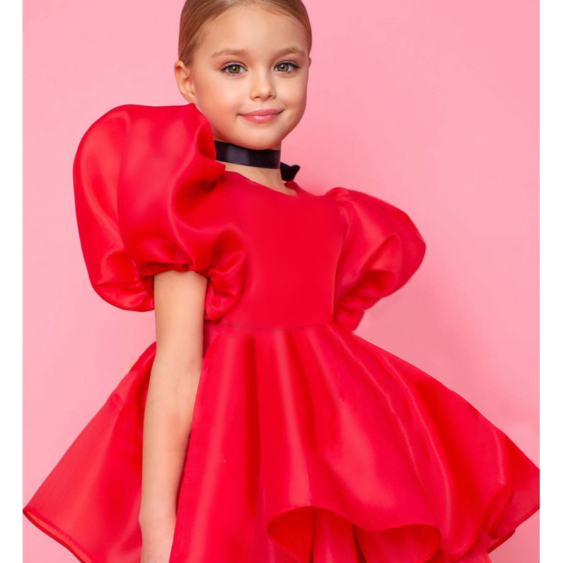 Fashion Girl Princess Puff Slee Dress Tulle Child Vestido Vintage Wedding Party Birthday Tutu Dress Child Clothes 1-10Y